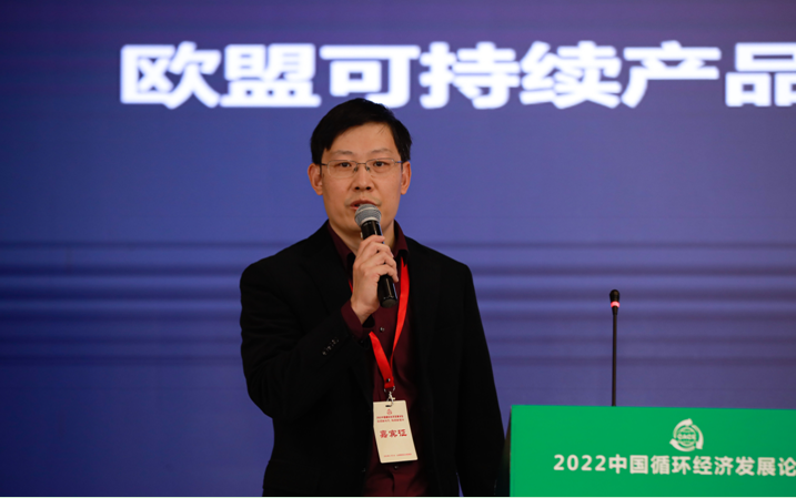 首先,艾伦·麦克阿瑟基金会(英国)北京代表处首席代表关一松发表了题为《欧盟循环经济最新政策进展—欧盟可持续产品生态设计法规提案及其对中国的启示》的主题发言。他指出,欧盟法规政策对中长期贸易格局具有重塑作用,中欧贸易关系会面临绿色法规和政策的约束,会对中欧贸易投资和相关产品带来深远影响;同时,欧盟循环经济的最新政策进展,对中国下阶段“构建废弃物循环利用体系”具有借鉴意义。关一松首代还表示,艾伦·麦克阿瑟基金会愿意加强与各界的交流合作,共同推动中国循环经济发展。