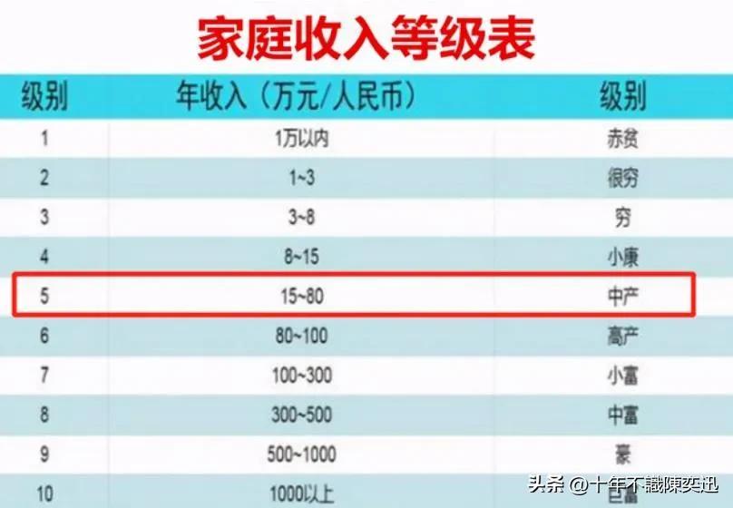 从第2等级到第4等级,家庭年收入逐渐增高,但第4等级也只不过是到达了小康水平,属于大部分普通人的标准。
