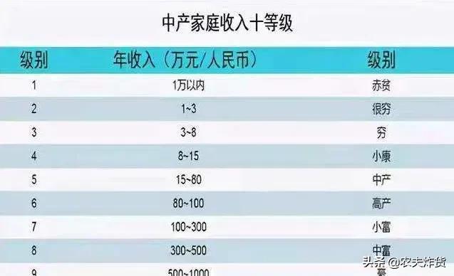 从等级表中,我们看出居于最高等级的家庭年收入为1000万元,很显然这对于绝大多数人来说是一辈子都无法赚到的钱。而与之相对的最后一级家庭年收入还不到1万元。