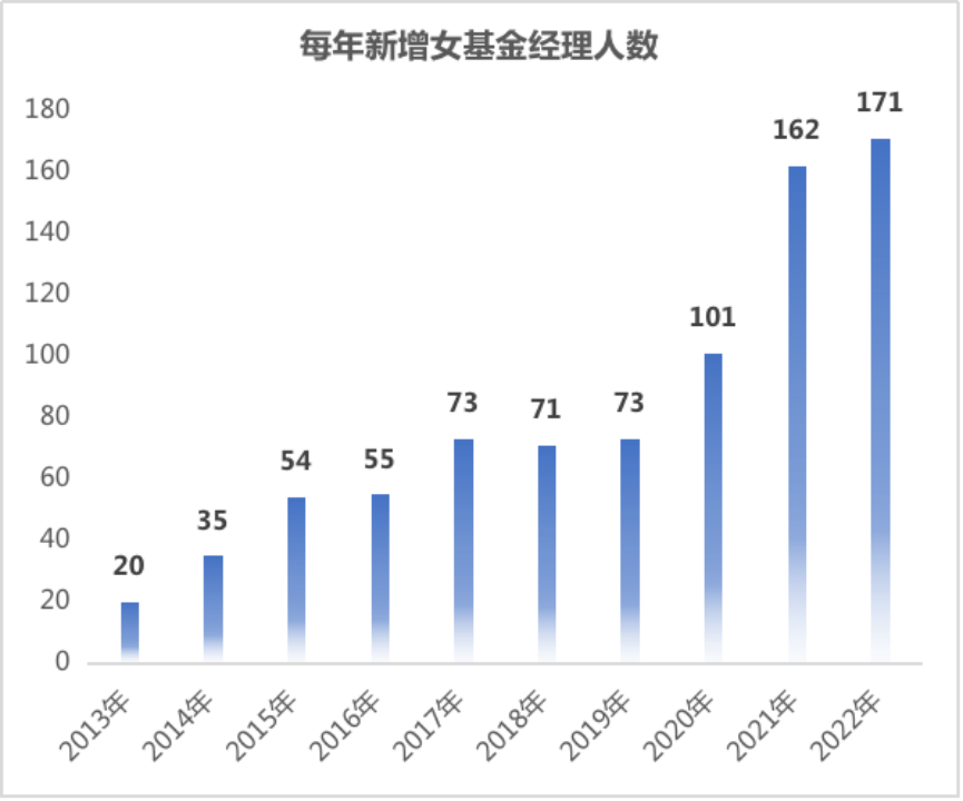 尤其是2019年以来,每年新增女性基金经理人数显著上涨。