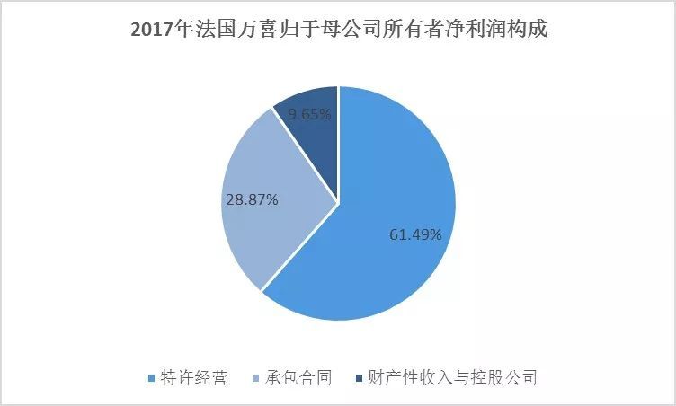 法国万喜收入和利润主要由三部分业务构成:特许经营(即PPP业务)、承包合同和财产性收入。2017年法国万喜总收入为402.48亿欧元,归于母公司所有者净利润为27.47亿欧元。