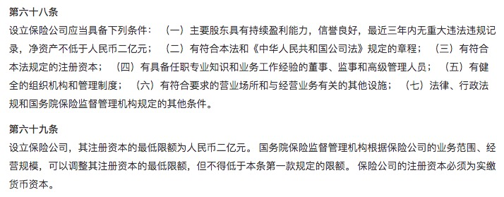 因为我国保险法规定设立保险公司最低注册资本是人民币2亿元。且必须为实缴资本。同时对其股东的持续盈利能力、信誉、董事高管都有要求。