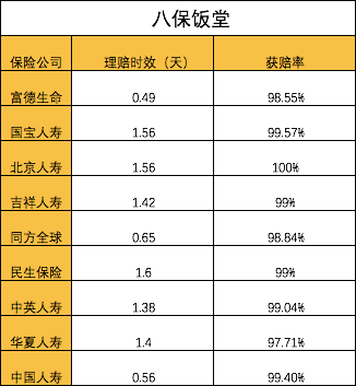 从数据来看,理赔实效在1-2天,获赔率也达到了97.71%。北京人寿则达到了100%的获赔率,有点让人惊喜。