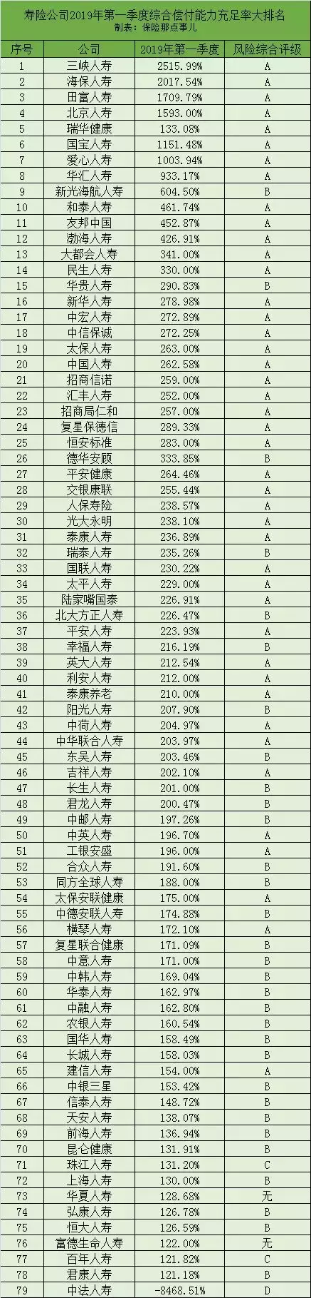 和偿付能力一样,风险综合评级也是我们了解保险公司资金安全性的重要依据。