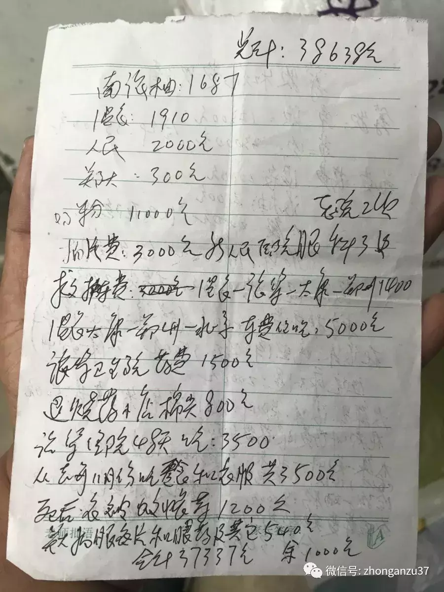 。王凤雅爷爷还出示了花销明细,以及部分支出收据。