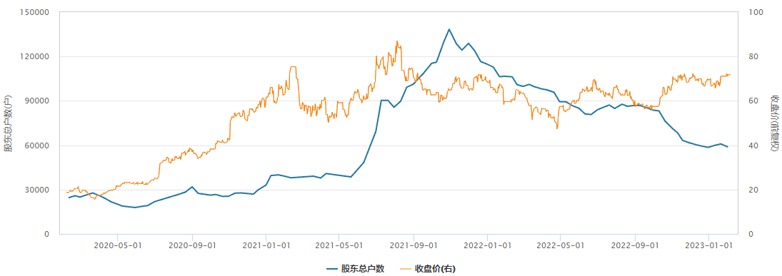 2023年1月31日数据显示,汇川持术股东户数已降至5.90万户,较峰值已“腰斩”,也意味着