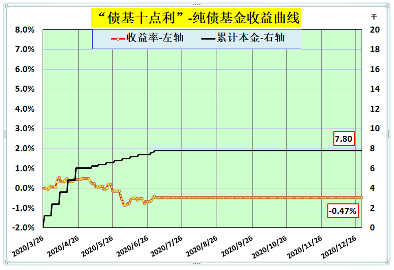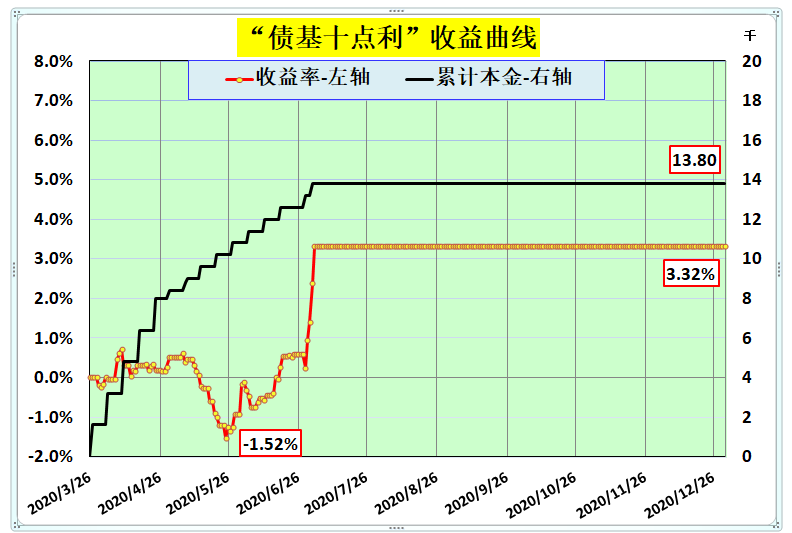 “债基十点利”投资实验,启动于2020年3月26日,原定计划投入期截止到6月底,目标收益率是到2021年6月底收益10%。