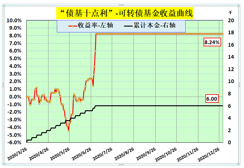 可转债基金投入本金6.00K,投资收益为8.24%,收益曲线见下图。