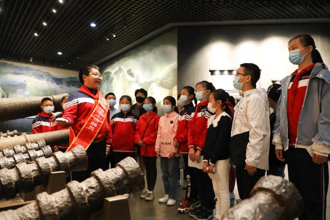 来自山海关区兴隆小学的“小小讲解员”正在向市民和游客介绍发生在山海关区的革命典故。