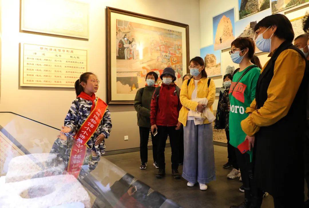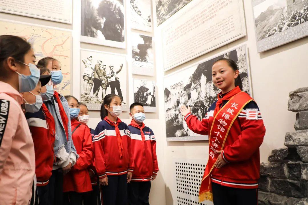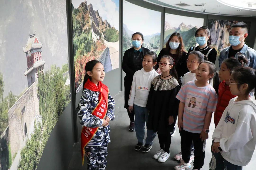 来自山海关区兴隆小学的“小小讲解员”正在向市民和游客介绍发生在长城沿线的长城抗战等历史事件。