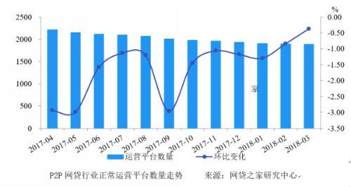 据网贷之家统计,截至2018年3月底,P2P网贷行业正常运营平台数量下降至1883家,相比2月底减少了7家。据不完全统计,3月停业及问题平台数量为41家,其中问题平台13家(提现困难7家、跑路6家),停业平台27家、转型平台1家。截至2018年3月底,累计停业及问题平台达到4198家,P2P网贷行业累计平台数量达到6081家(含停业及问题平台)。