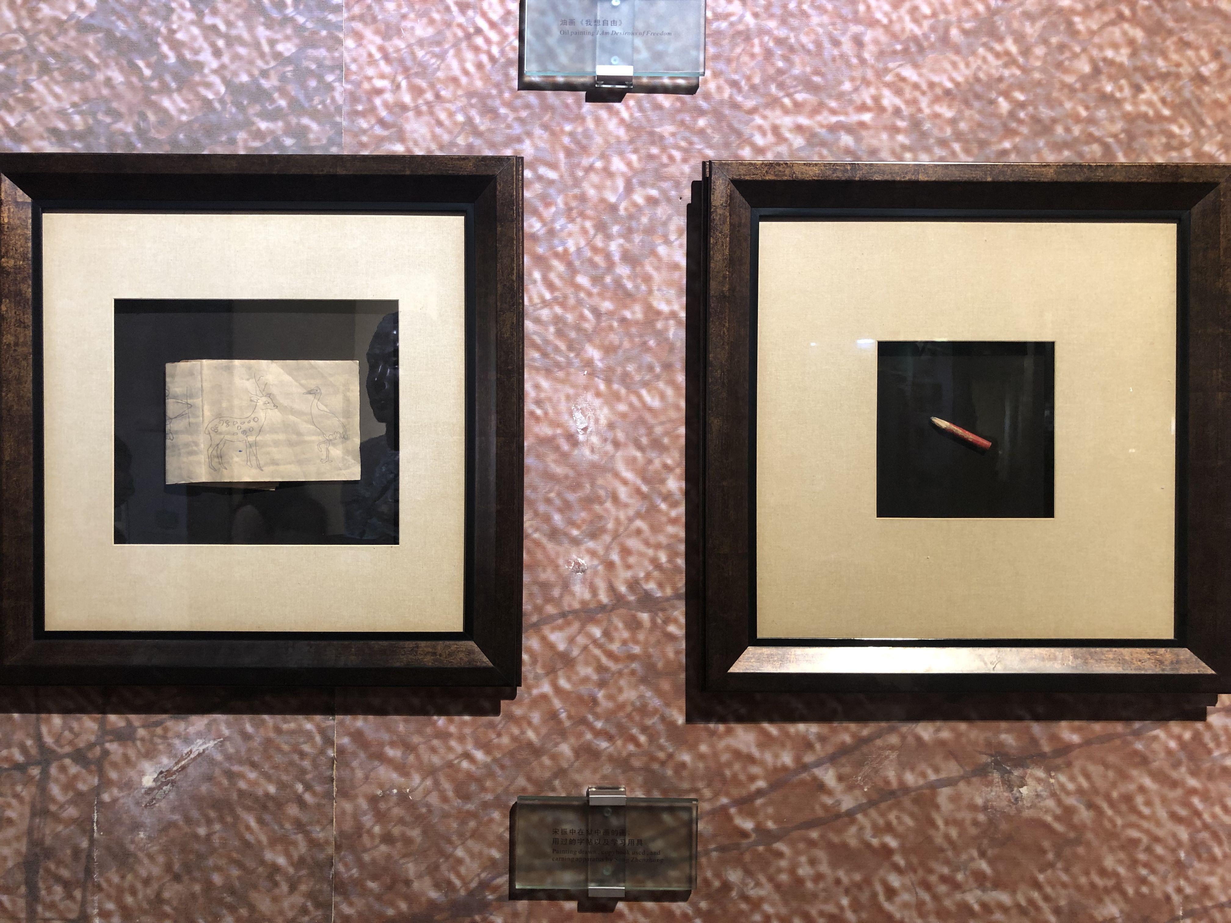 重庆红岩魂陈列馆中展出的小萝卜头在狱中用过的半截铅笔和画过的画。新京报记者 张静姝 摄
