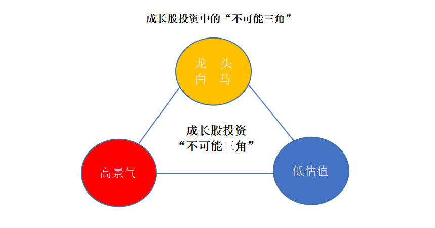 在钟帅的眼里,成长股投资中,存在一个不可能三角:好公司、低估值、高景气度三者不可兼得。