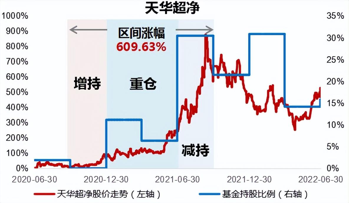 在钟帅过往的投资履历中,就多次抓住“潜在白马”获得超额收益。以重仓股举例,2020年3季度之前天华超净基金持股占比不足1%,市场认知度较低。钟帅通过深度调研,领先市场布局,第四季度增持天华超净至十大重仓股,此后天华超净逐渐被市场发现,股价也随之逆袭。