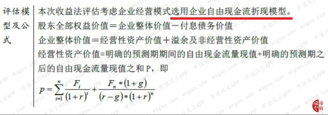 估值采用的是收益法,以自由现金流折现为估值模型。