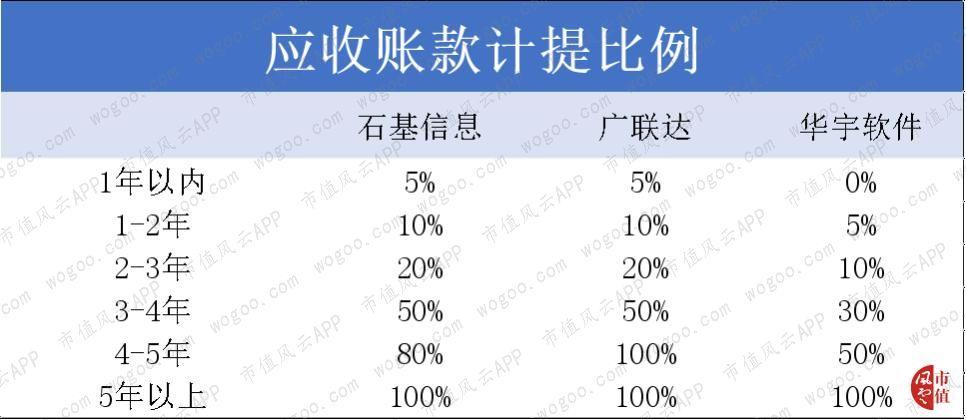 风云君注意到,华宇软件的应收账款计提政策较其他可比公司,稍宽松。