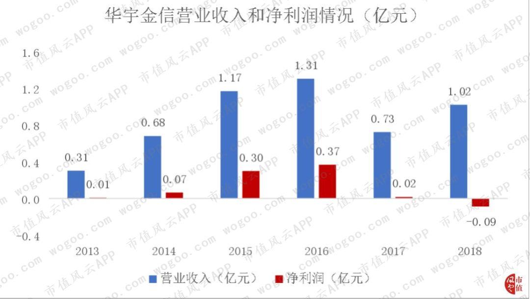2013-2016年,华宇金信的业绩表现正常,但后面开始恶化,2018年,公司净亏损近900万。