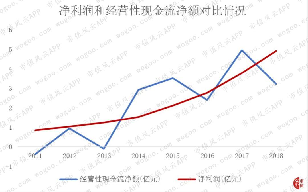 2011-2018年,华宇软件的净利润与经营性现金流净额,整体的趋势是一致的,