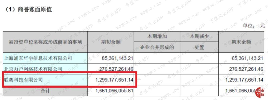 截至2018年12月31日,商誉是因收购三家公司而形成,其中,因收购联奕科技而形成的商誉,接近13亿,占商誉总值的78%。其次是收购万户网络形成的2.77亿。