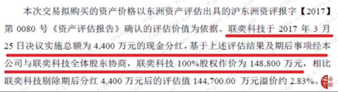 但联奕科技在实施4400万元的现金分红之后,华宇软件反而将联奕科技的估值,从14.47亿元提高到14.88亿。
