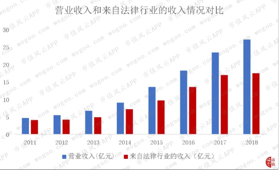 2018年,来自法律行业的营收占公司总营收的64.43%。